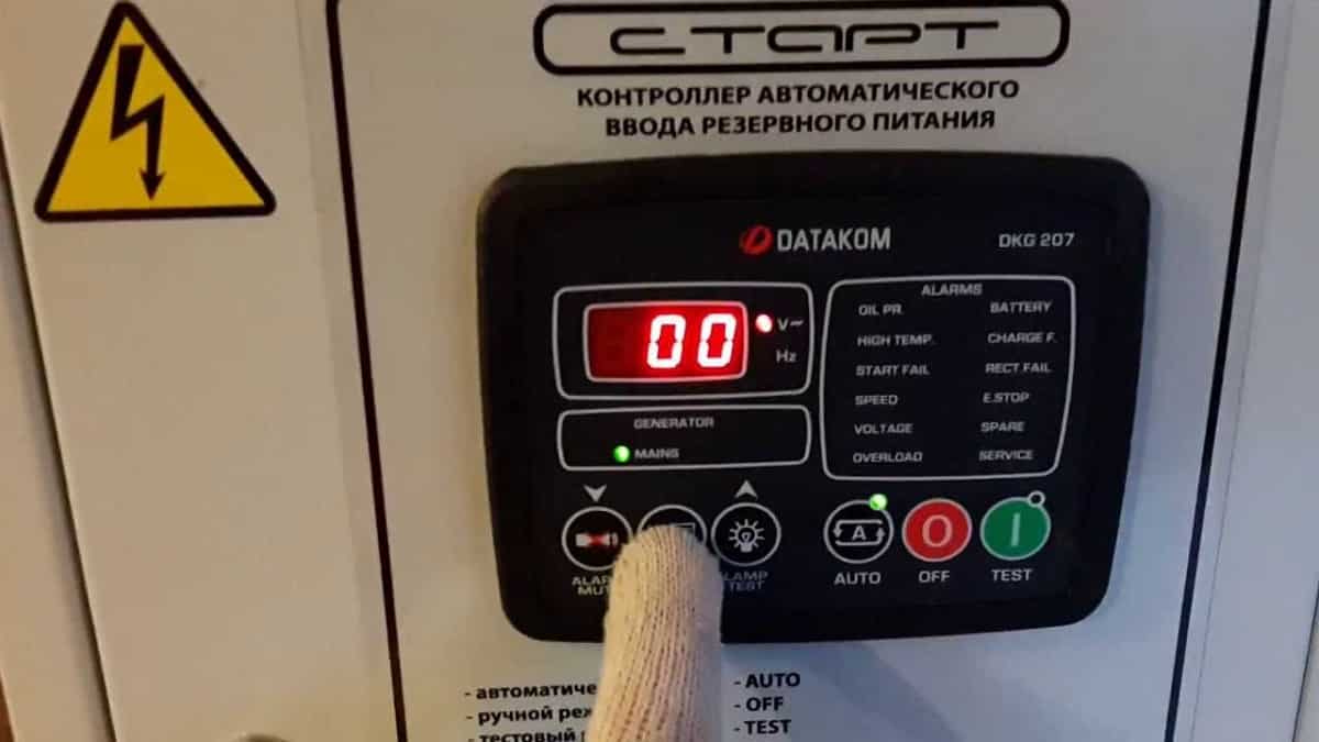 Щит автоматики генератора на контроллере Datakom DKG-207, в автоматическом режиме, контролирует напряжение фаз основной электросети, обеспечивает автоматический запуск и переключение нагрузки, отслеживает аварийные ситуации при работающем двигателе, при необходимости переходит в режим «авария» с остановкой двигателя, и оповещает о причинах отключения, путем включения соответствующего светодиода на панели управления.