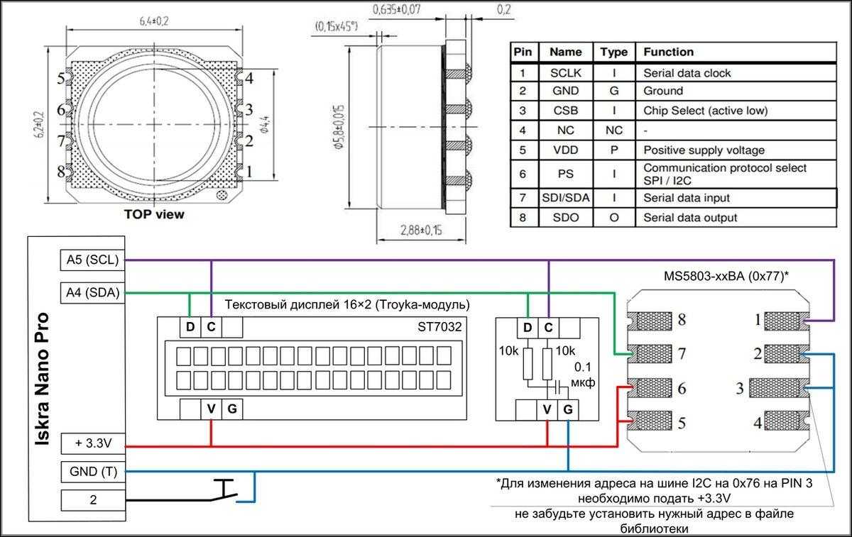Библиотека работы с датчиком давления берется здесь: https://github.com/millerlp/MS5803_05