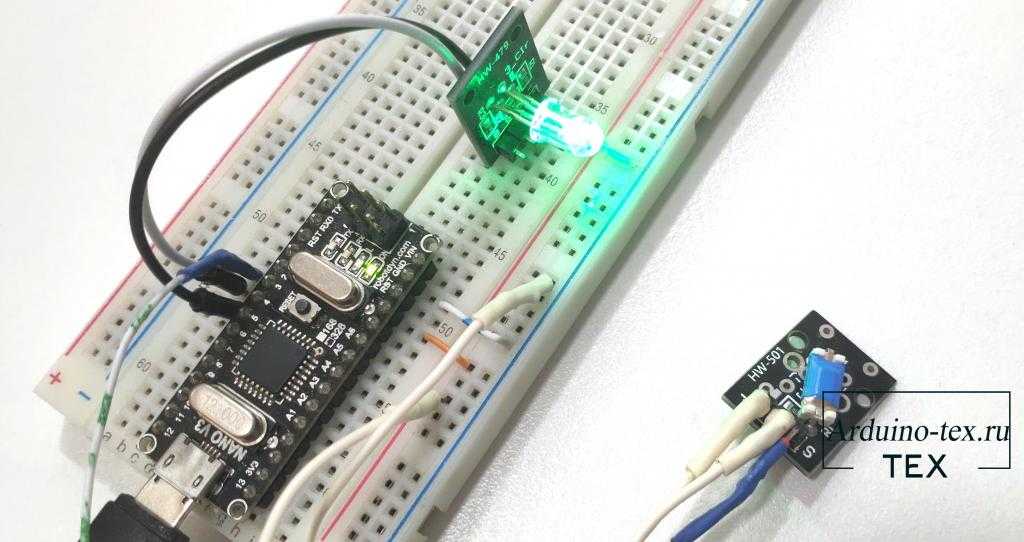 Так как на модуле распаяна вся необходимая обвязка, дополнительные резисторы подключать не нужно. Как мы делали в уроке: KY-017 – модуль ртутного датчика наклона.