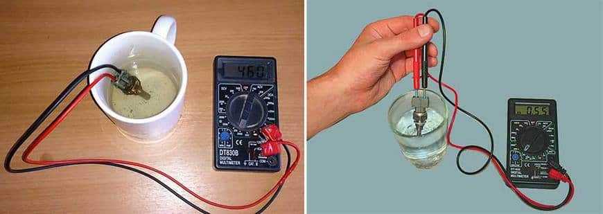 Для проверки датчика его следует погрузить в емкость с водой и довести ее до кипения. Затем присоединить к выходным контактам щупы мультиметра и посмотреть, что он покажет.