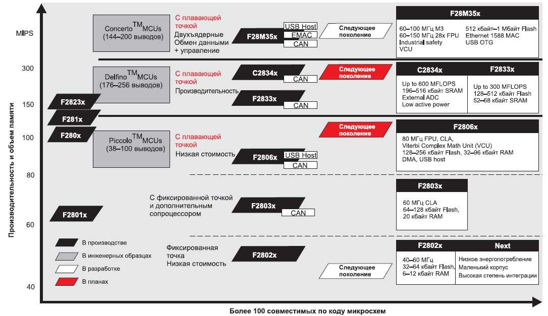 Рис. 4. Развитие семейства микроконтроллеров C2000