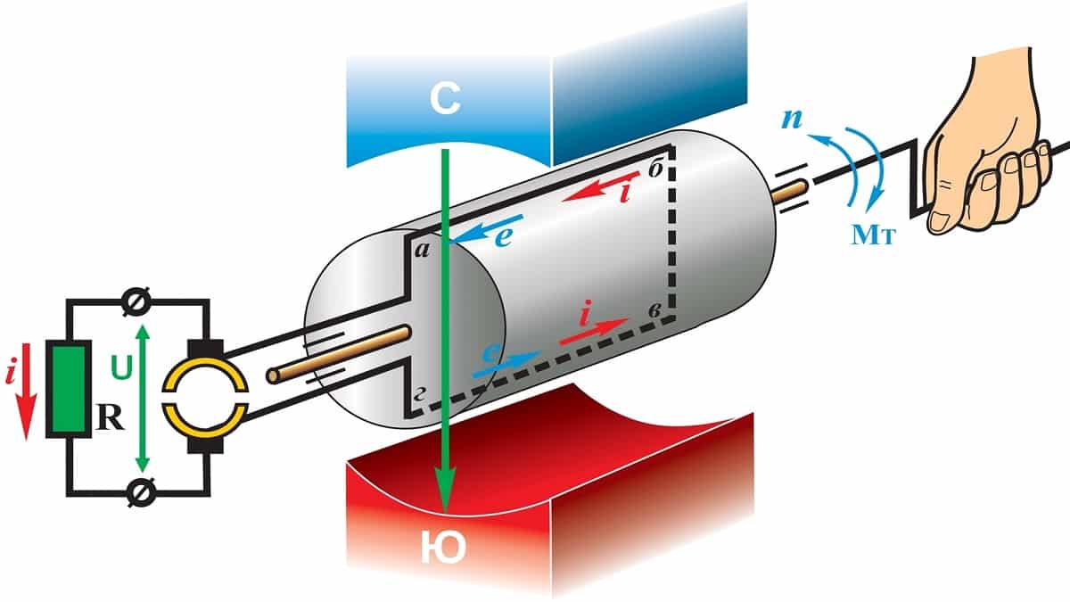 Как известно, в дизельном или бензиновом генераторе электрический ток образуется после прохождения вращающегося магнитного поля через обмотку. При этом в синхронном электрогенераторе ротор представляет собой постоянный магнит или электромагнит. После запуска генератора он создаёт вокруг себя слабое магнитное поле, которое с увеличением оборотов становится сильнее. В конце концов, число оборотов ротора и магнитного поля синхронизируются, что позволяет получить на выходе наиболее стабильный ток.