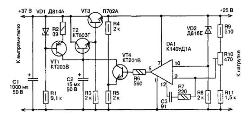 Усовершенствованная схема стабилизатора напряжения 12 вольт
