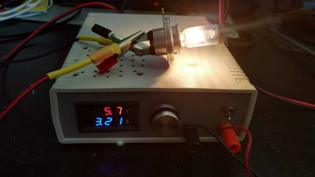 - Включите источник питания и постепенно увеличивайте уровень напряжения на нем.