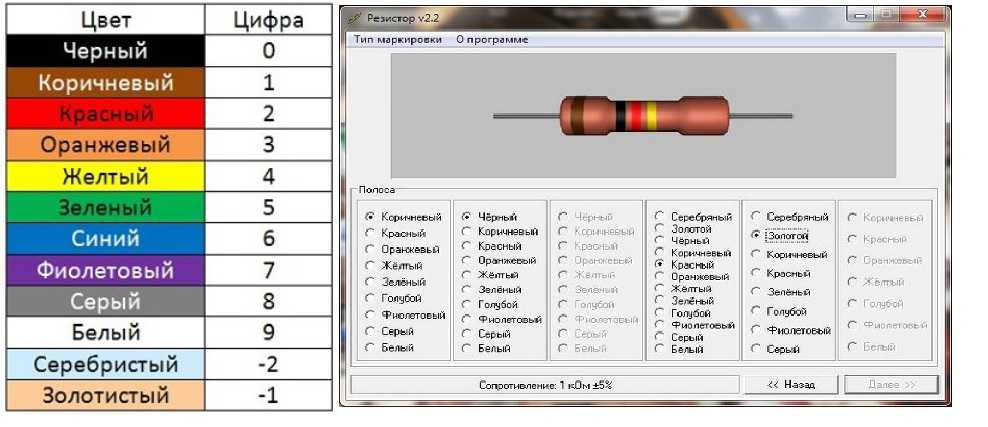 На рисунке показан пример специализированной программы. С помощью подобных калькуляторов упрощается определение номинала. Расчет выполняется автоматически. Чтобы узнать значение в цифровой форме, достаточно сделать отметки в соответствии с расцветкой определенного радиокомпонента.