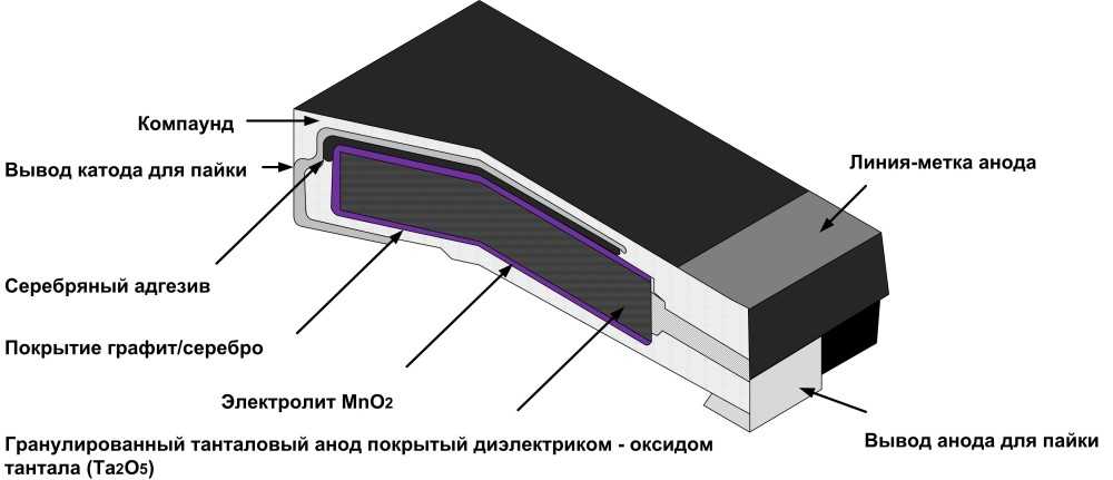 Рисунок 2 – Конструкция твердотельного танталового чип-конденсатора