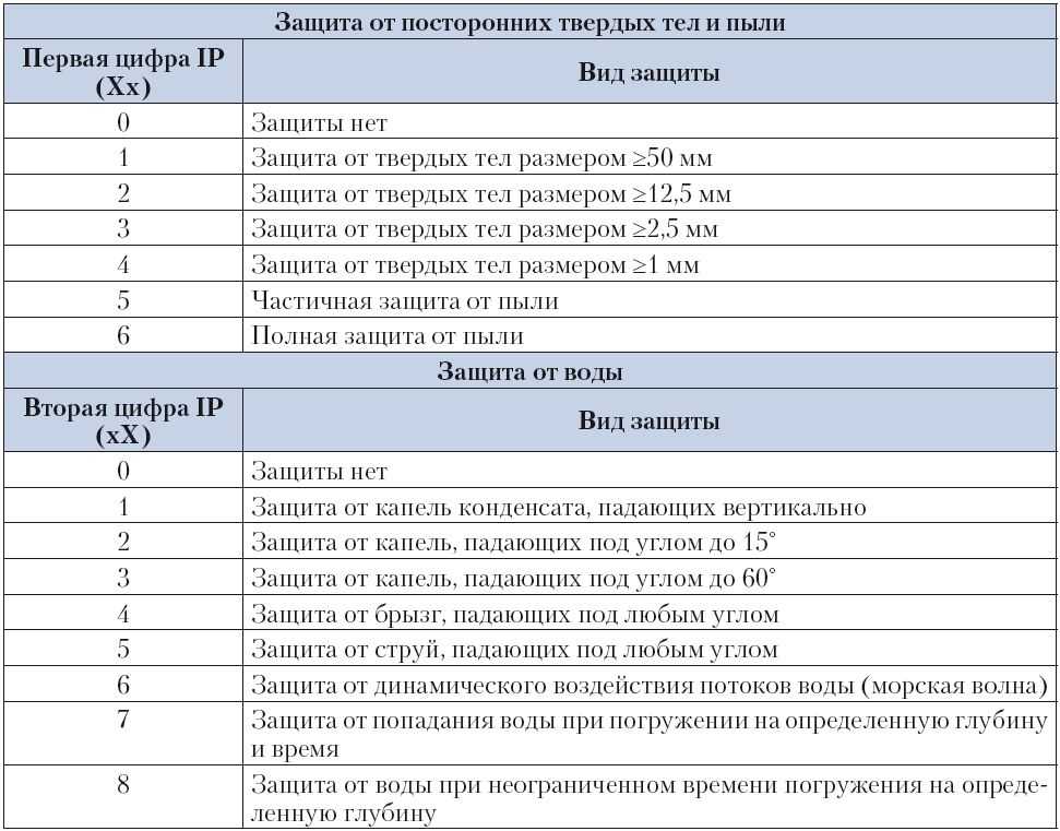 Расшифровка значений степеней защиты IP