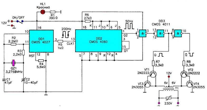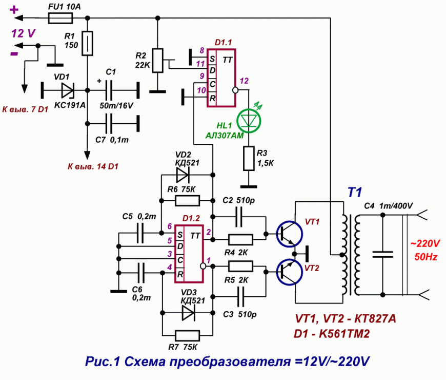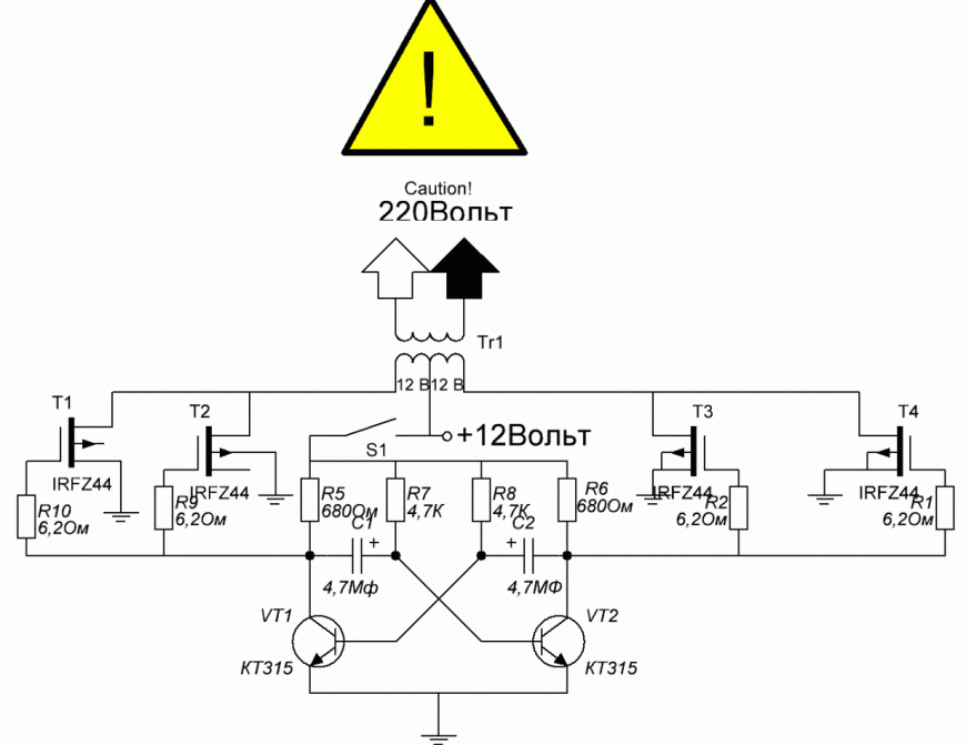 Для того чтобы сделать преобразователь напряжения 220в своими руками не потребуется сложная электроника. Схематически задача совсем несложная. Новичок спокойно с ней справится. Небольшой комплект составляющих – транзисторы, трансформатор и резисторы, соединенные простой и понятной схемой преобразователя напряжения своими руками. Действовать надо предварительно изучив инструкцию.
