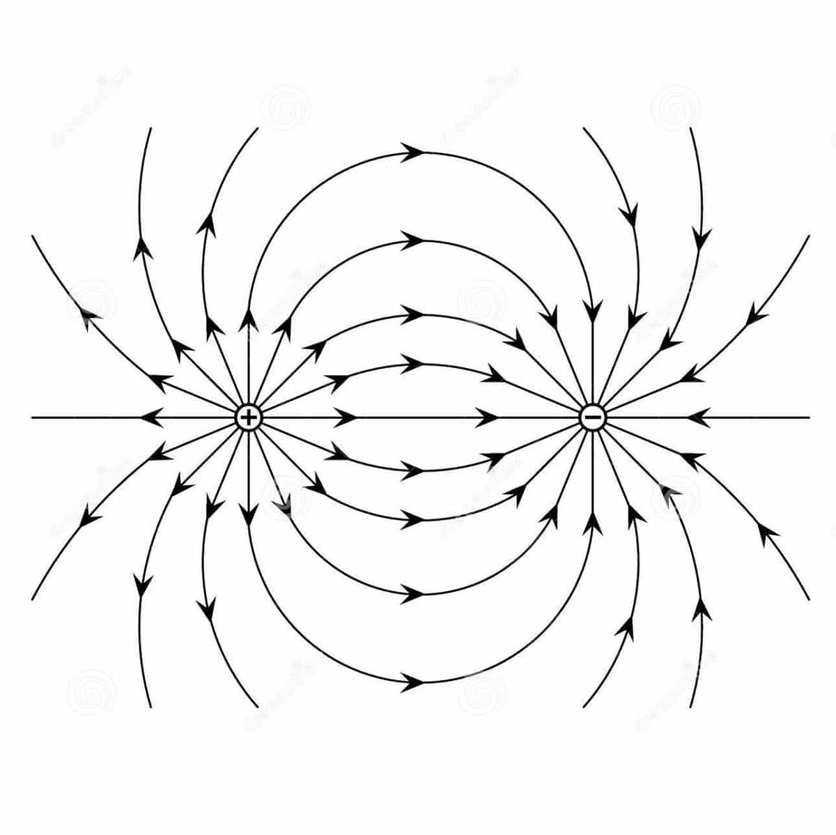 Чаще встречаются поля, напряжённости которых в разных точках отличаются. Линии напряжённости у них имеют сложную конфигурацию. Простейшим примером неоднородности является электрический диполь, то есть система из двух разноимённых зарядов, влияющих друг на друга (см. рис. 3). Несмотря на то, что векторы напряжённости электрического диполя образуют красивые линии, но поскольку они не равны, то такое поле неоднородно. Более сложную конфигурацию имеют вихревые поля (рис 4). Их неоднородность очевидна.