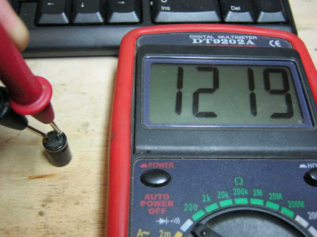 После чего нужно щупы поменять местами, показания начнут уменьшаться почти до нуля. Если все произошло так как я описал, “кондер” исправен. Если нет изменений в показаниях или показания сразу становятся большими или прибор вовсе показывает ноль, конденсатор неисправен. Лично я предпочитаю проверять “кондюки” стрелочным прибором плавность движения стрелки легче отслеживать, чем мелькание цифр в окошке индикатора.