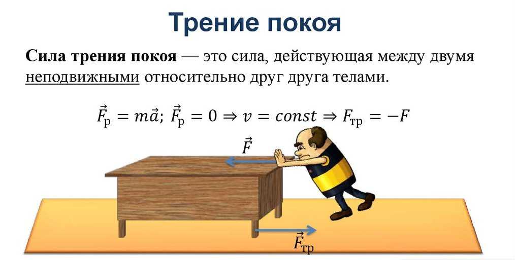 Примечание: Сила трения скольжения меньше максимальной силы трения покоя.