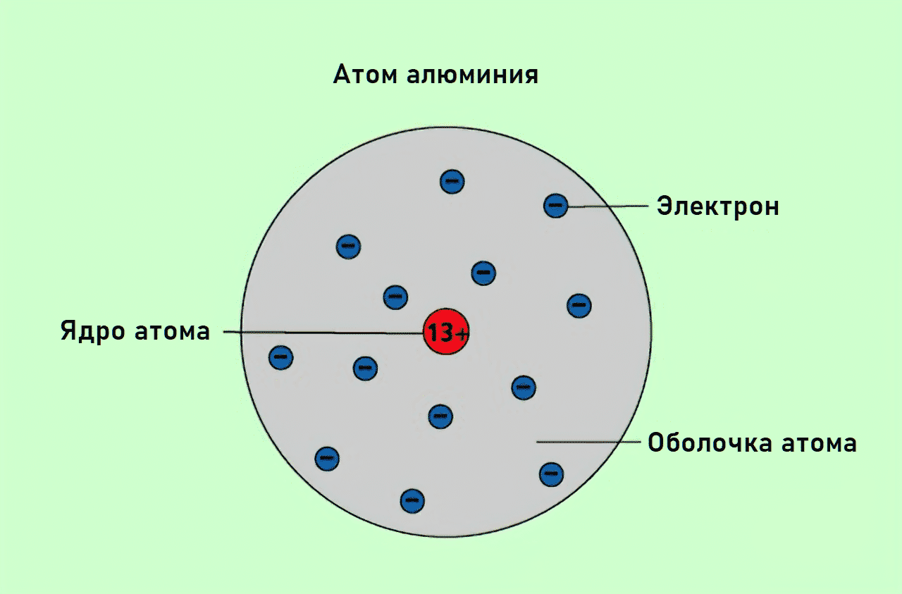 Рассмотрим атом. Атом состоит из ядра и, летающих вокруг него, электронов (на рисунке синие частицы). Ядро состоит из протонов (красные) и нейтронов (черные).
