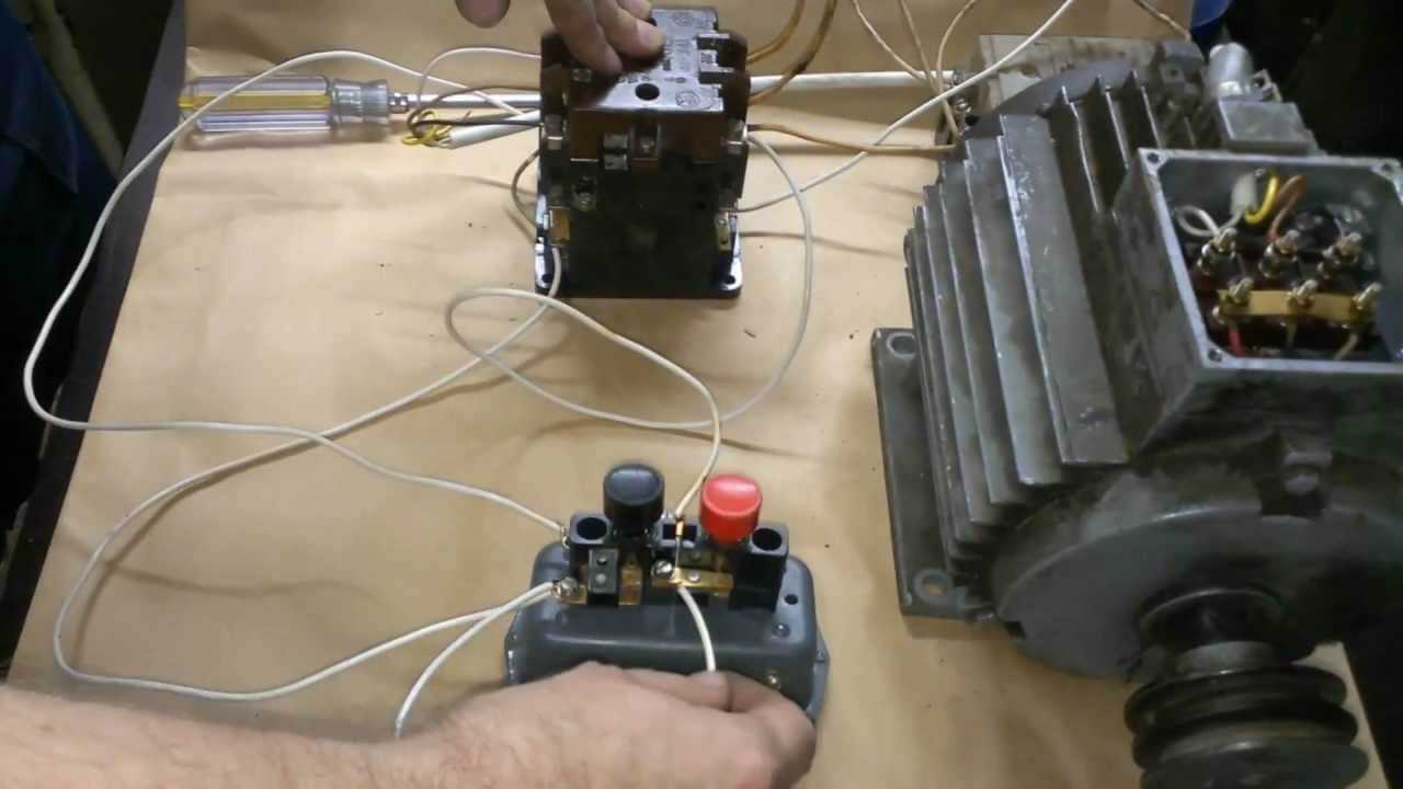 В этом случае действовать нужно так, как показывается на видео: Подсоединяем пускатель через кнопочный пост без реверса На примере с двигателем выглядит это так: Управление электродвигателем на Вольт Подключить по реверсивной схеме двигатель можно следующим образом: Включение двигателя через три кнопки Вот по такому принципу можно самостоятельно подключить устройство к сети и вольт. У алюминиевых проводов концы зачищают надфилем, затем покрывают пастой или техническим вазелином Чтобы не допустить перекоса пружинных шайб, находящихся в контактном зажиме пускателя, конец проводника загибают П-образно или в кольцо.