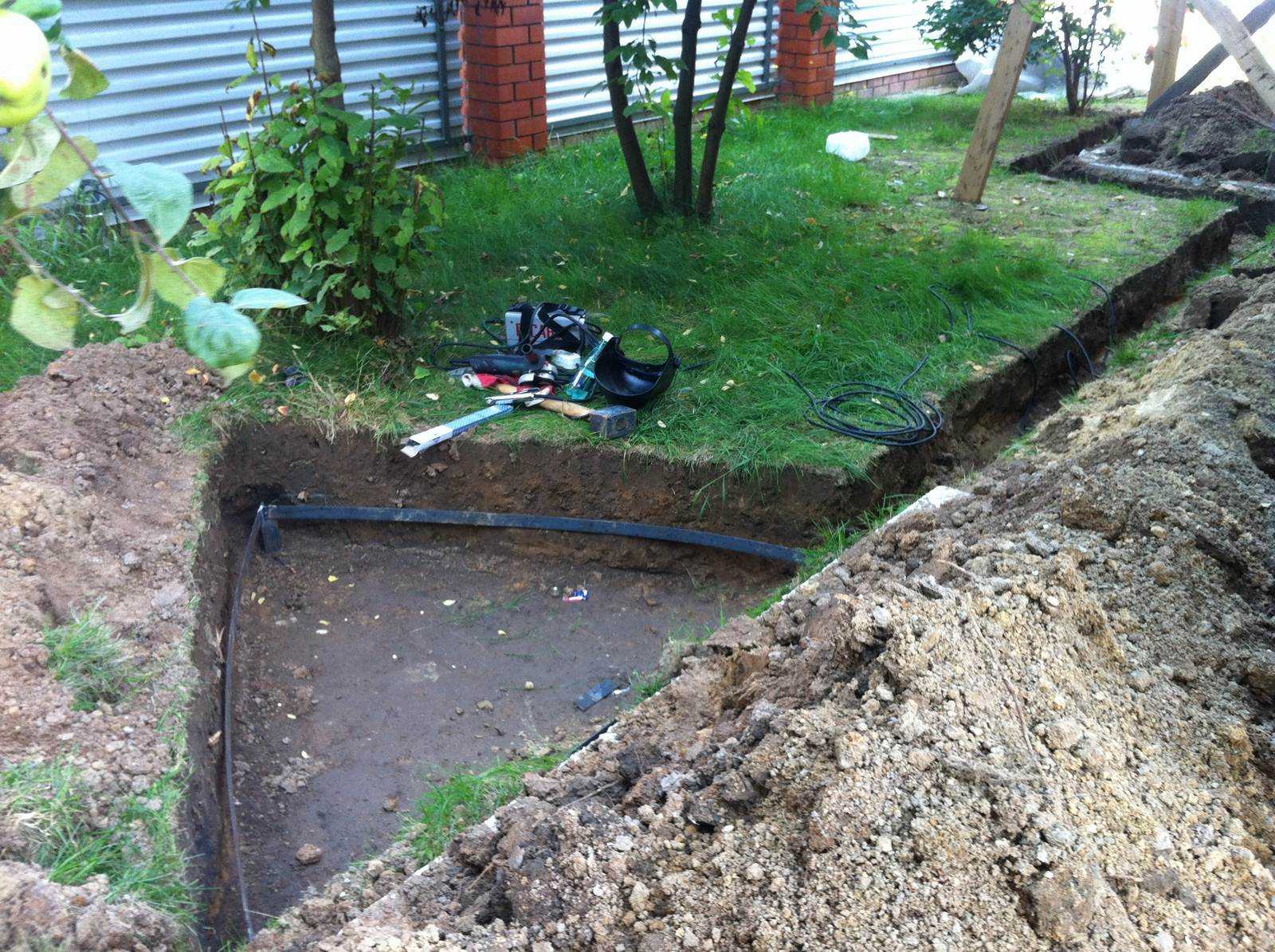 Также стоит дополнительно прокопать траншею такой же глубины для подвода полосы к зданию и выводу ее на фасад.