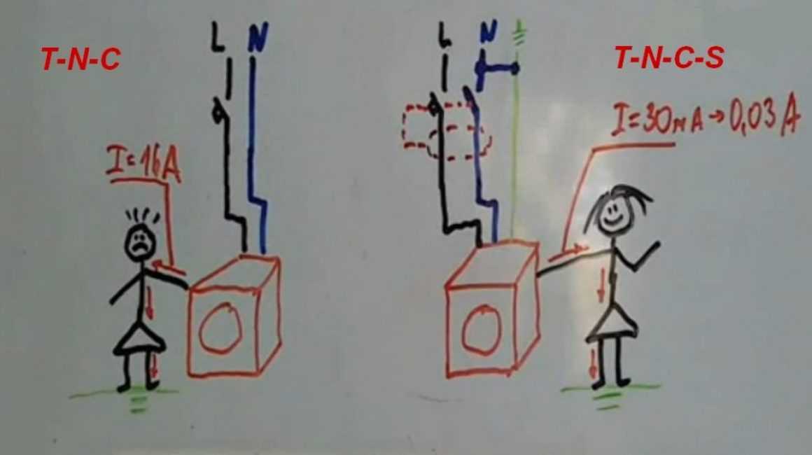 TN-C-S – усовершенствованная система, где все-таки происходит разделение PEN-проводника на PE и N на середине линии. Если происходит обрыв после разделения, то на корпусе электроустановок не возникают высокие электрические потенциалы. А если обрыв произошел на PEN, то возникает вероятность поражения электротоком от корпуса, естественно, при внештатной ситуации. Основной недостаток данной системы заключается в ничтожной устойчивости системы при обрыве нулевого проводника (отгорание нуля).
