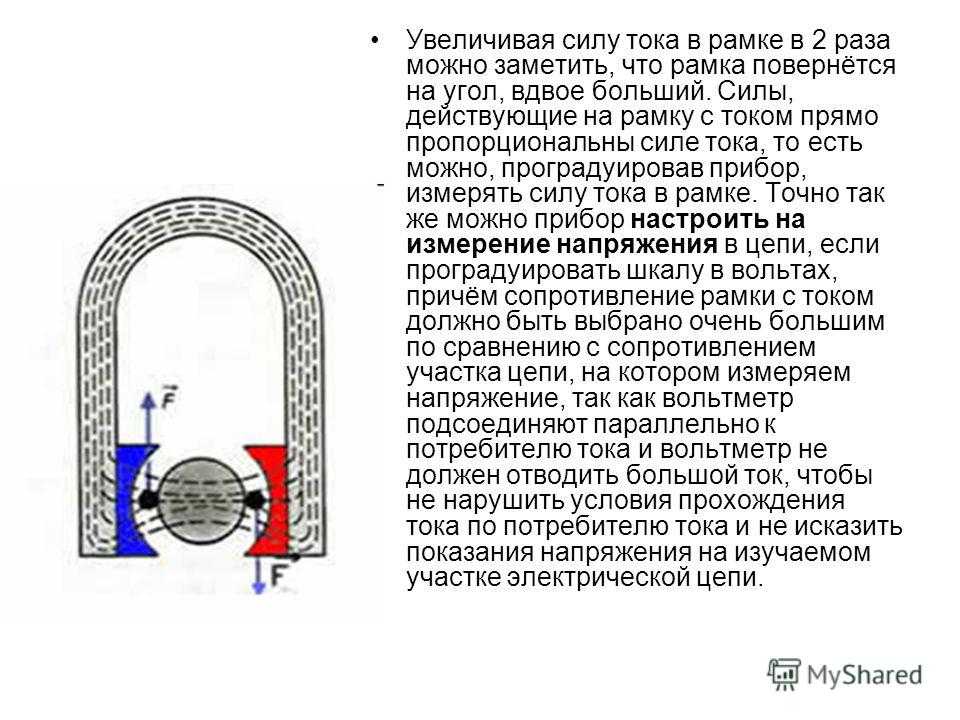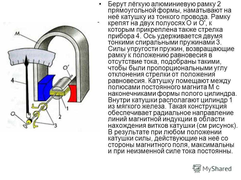 угол поворота подвижной части прибора определяется величиной измеряемого