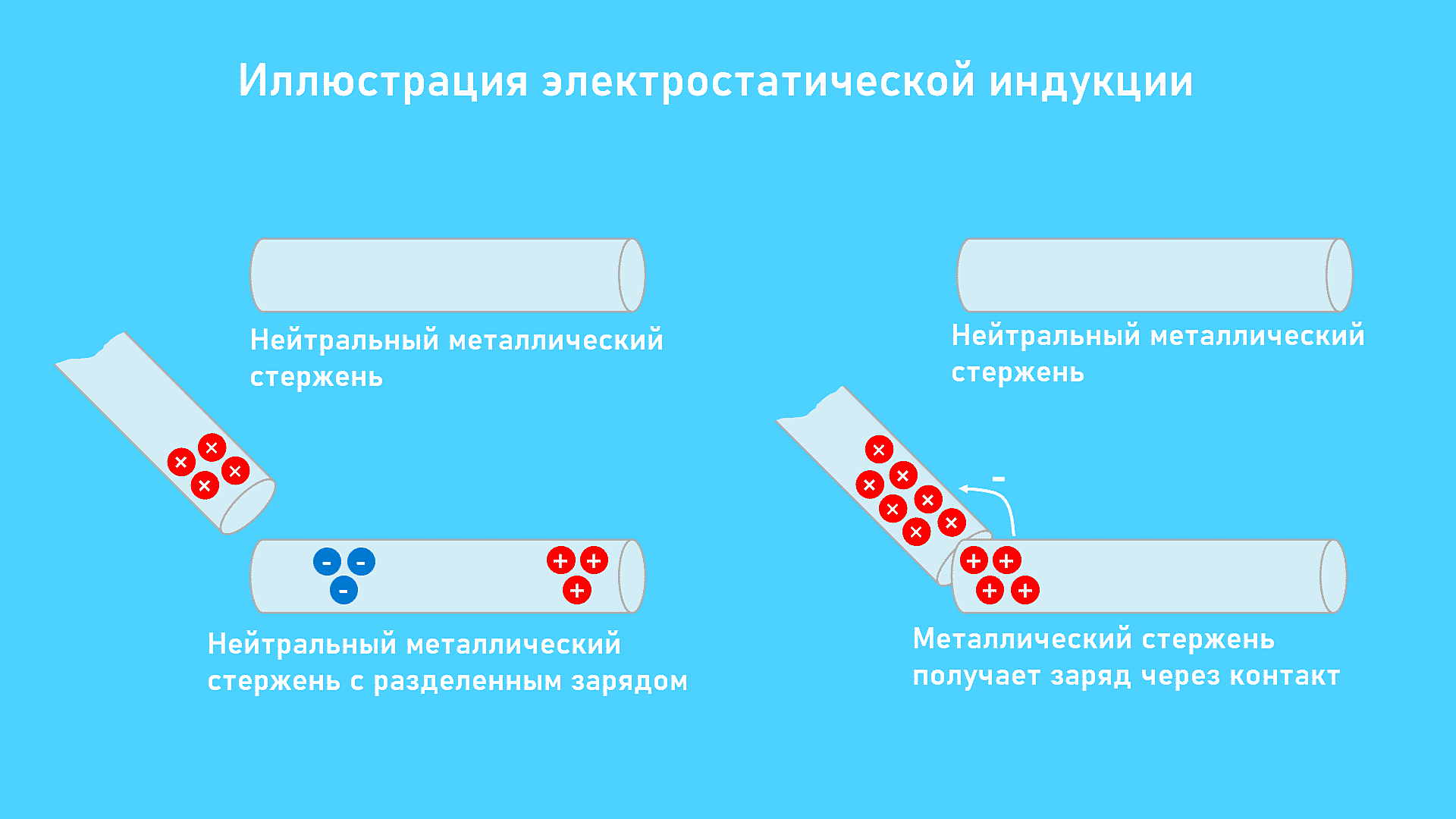Рис. 2. Иллюстрация электростатической индукции (слева) и передачи заряда через контакт (справа)