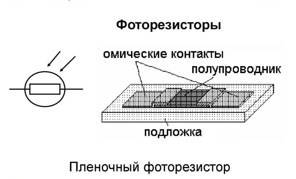 Между двумя токопроводящими электродами размещается полупроводник. В том случае если свет не попадает на полупроводник, то его оммическое сопротивление имеет высокое значение (до нескольких МОм). Как только на полупроводник попадает свет, его сопротивление начинает снижаться, то есть проводимость увеличивается.