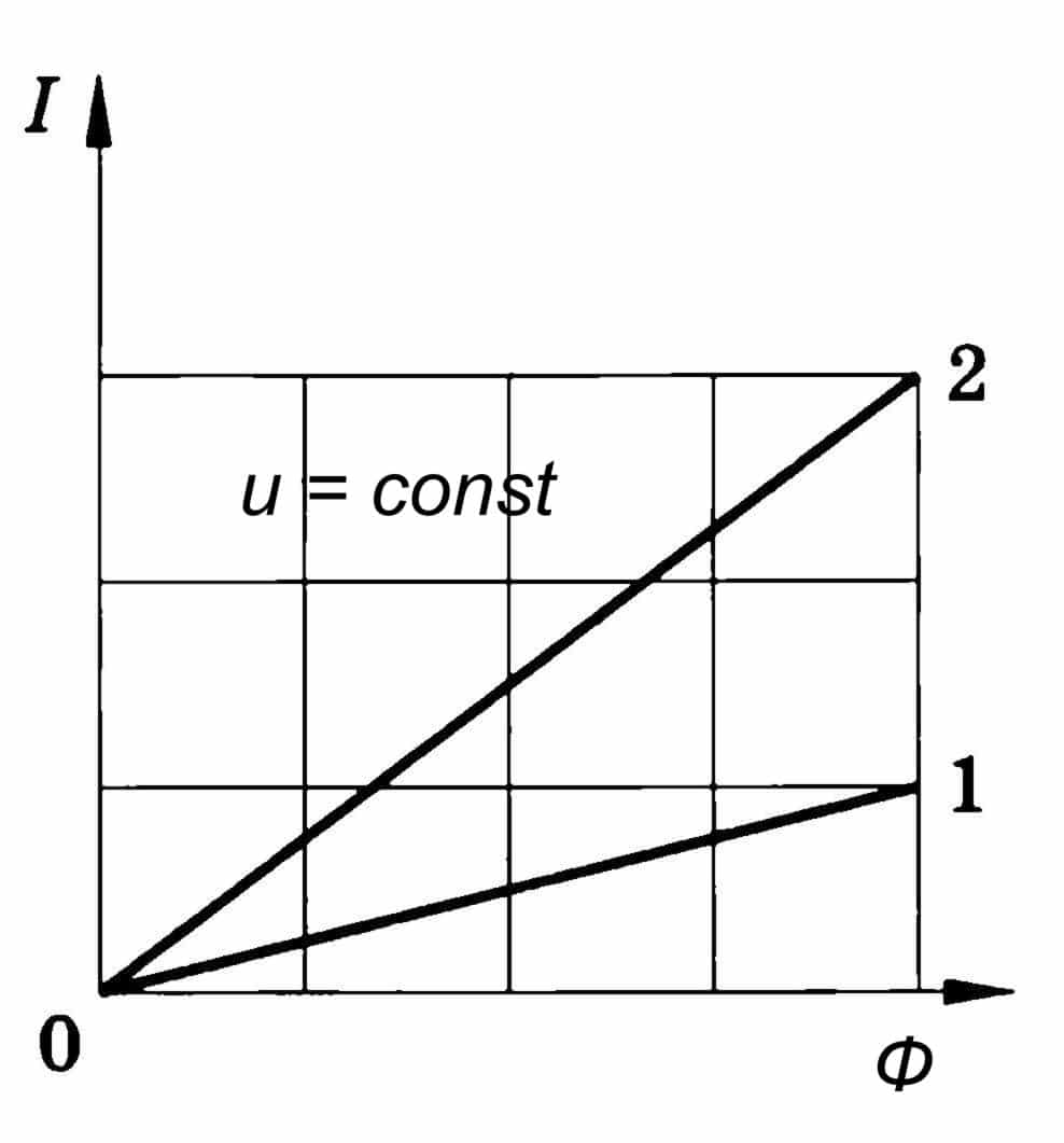Под действием фотонов света полупроводник насыщается электронами, в результате чего он становится способным проводить электрический ток. Чем больше электронов образуется, тем меньшее сопротивление току оказывает полупроводниковый материал. Зависимость силы тока от освещения иллюстрирует график на рис. 6.