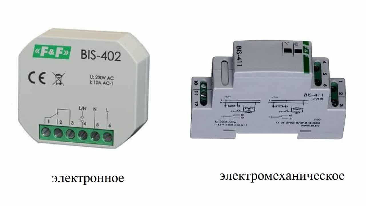 Широкий выбор импульсных реле обеспечивает достаточно большой ассортимент, отличающийся как ценовой политикой, так и предоставляемым функционалом. По принципу действия все модели можно разделить на электромеханические и электронные (рисунок 4).