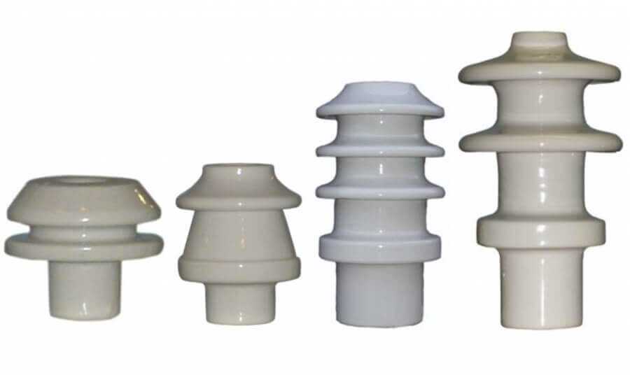 Фарфоровые можно назвать классикой, такие применялись раньше даже при наружной проводке в домах. Обычно они белого цвета, но могут быть и других цветов. Такие можно увидеть на разных электроустановках. Достоинством является то, что они выдерживают большие нагрузки на сжатие, обладают хорошими диэлектрическими свойствами.