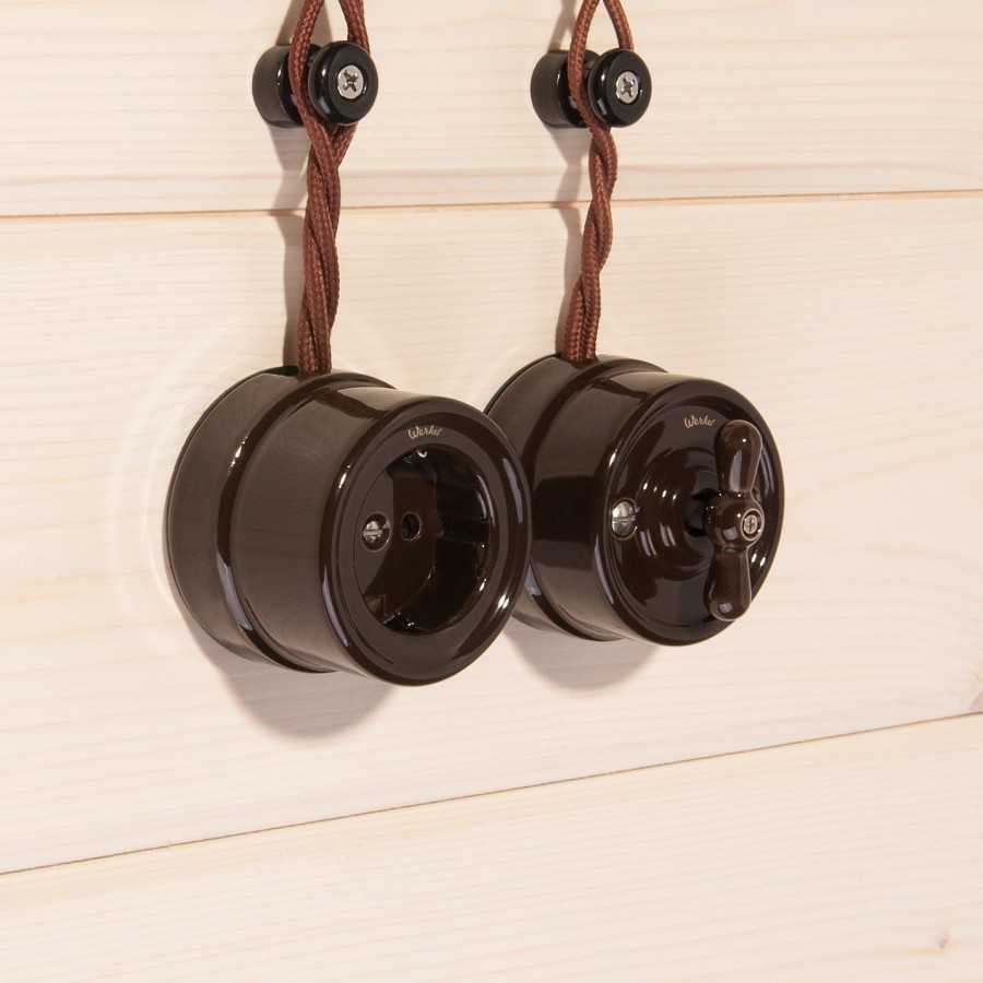 - Наружной установки. В отличие от рассмотренного выше вида, конструктивные элементы такого узла находятся снаружи. Для крепления применяются винты, удерживающие изделие на поверхности. Электрическая часть надежно защищена пластмассовым корпусом. В качестве дополнительных опций может применяться подсветка, крышка от детей, таймер выключения и т. д.