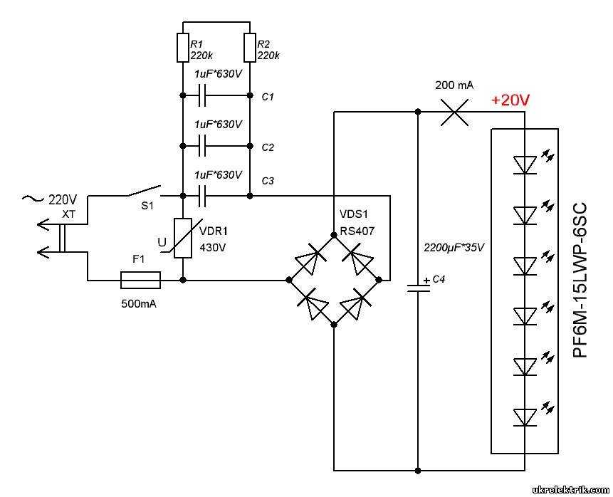 Поэтому светоизлучающий диод обязательно подключается только через токоограничивающий элемент. Наиболее дешевыми и простыми в сборке является схемы с понижающим элементом в виде резистора или конденсатора.
