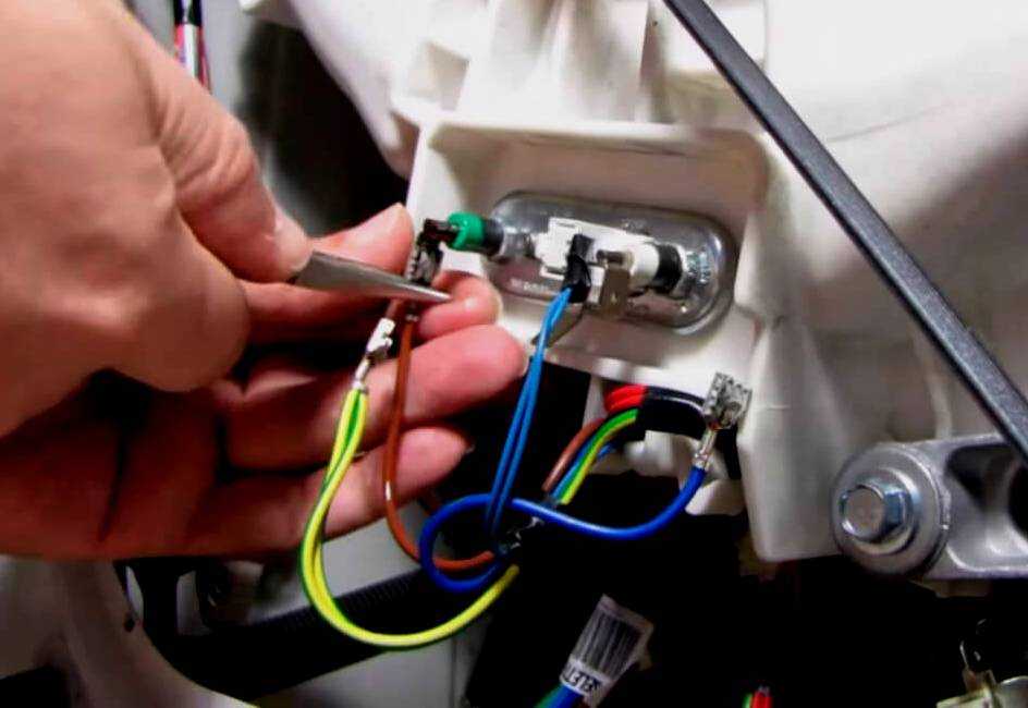 Также есть вариант обрыва ТЭНа, или проблеме в сетевом фильтре. Чтобы исключить большинство вариантов, следует отсоединить питающие провода от ТЭНа и заизолировать их. После включить машинку, и если она будет работать, а автомат не выключится, то проблема в ТЭНе, и можно смело его менять.