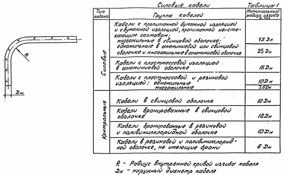 Радиус загиба кабеля должен быть плавным, и уж никак не под прямым углом. КЛ загнутый таким образом, в особенности бронированный, будет резать сам себя.