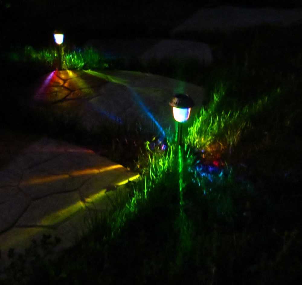 Декоративные лампы придают приятное освещение вашему участку. Они отмечают конкретное место, их цель вовсе не связана с максимальной освещенностью территории. Из-за слабого светового излучения срок службы декоративной подсветки значительно превышает аналоги на солнечных батареях. Достаточно частое явление, когда декоративное освещение работает несколько ночей подряд, зарядившись в один яркий солнечный день.