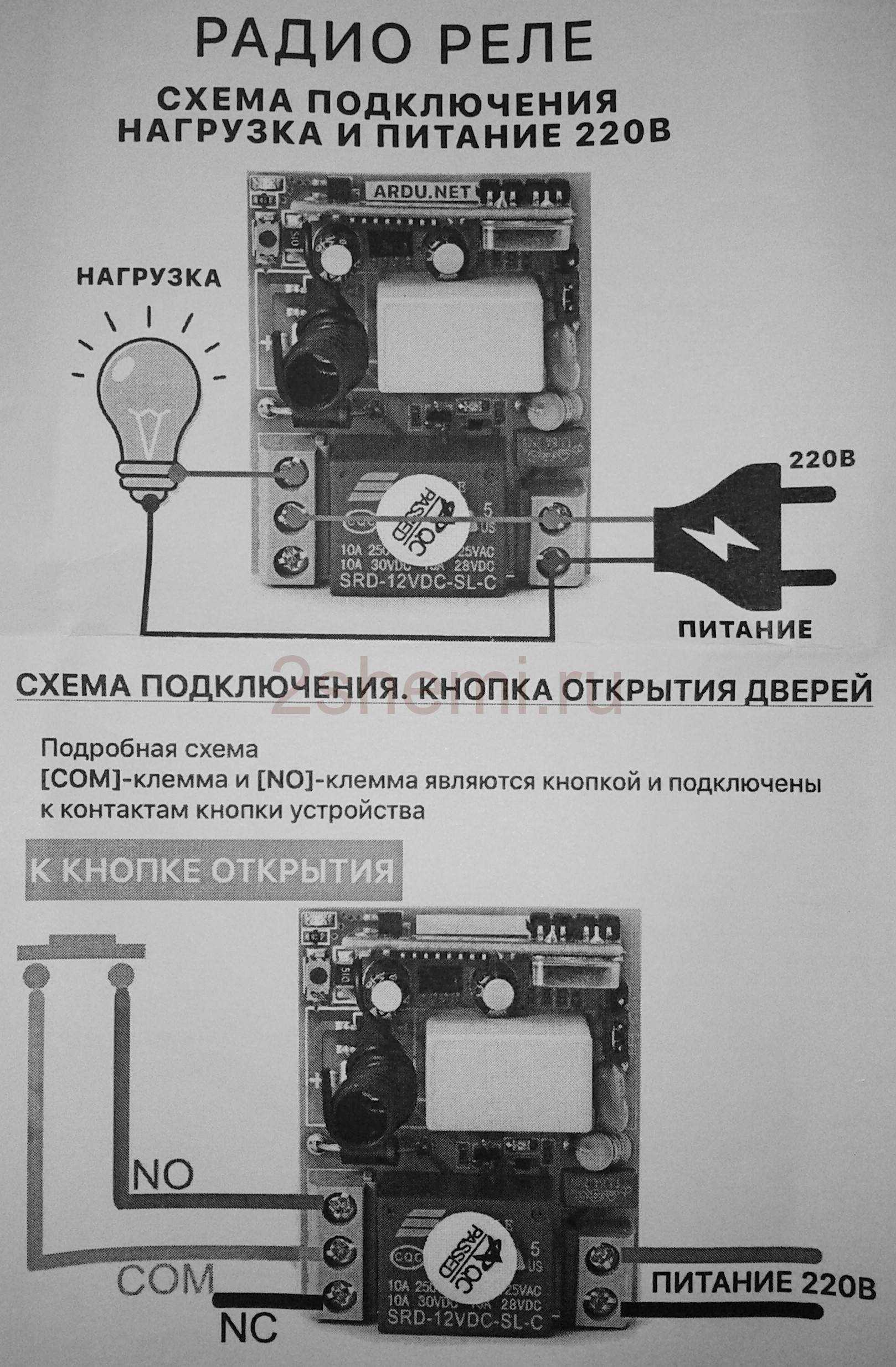 - первый, пока нажимаем клавишу пульта радиореле держит нагрузку включённой, отпускаем — оно отключается (вариант как звонок).