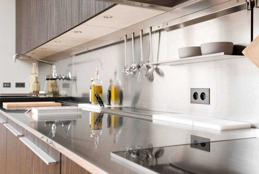 Возможна установка точек питания за приборами, но это приводит к затруднительному доступу. Можно установить их в соседнем шкафчике или над столом.
