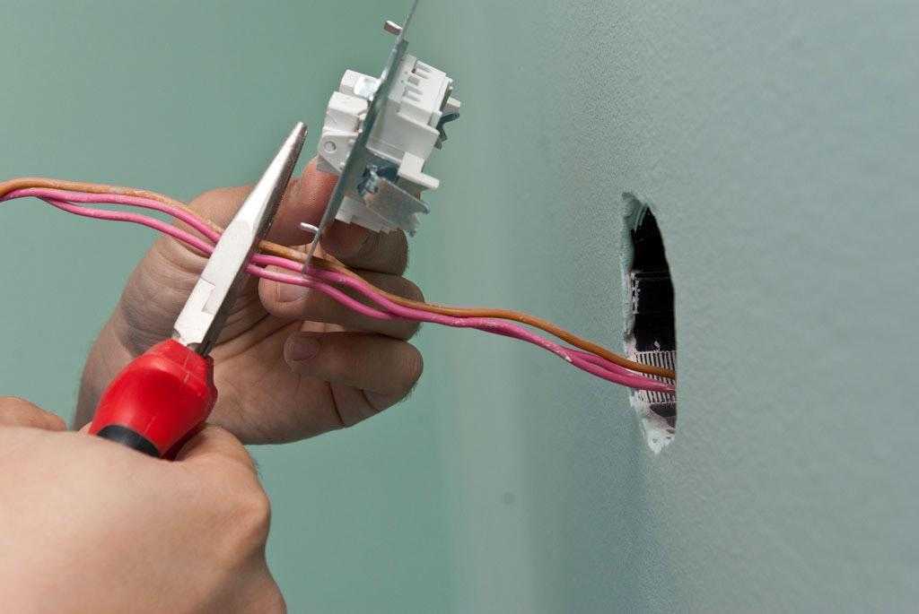 Далее надо укоротить проводники, торчащие из стены, до разумной длины – чтобы при установке выключателя они полностью убрались в выемку.