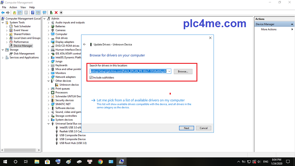 + 20 : Select the path to MultiKey64 in the Patch_EPLAN_Win7-10 folder