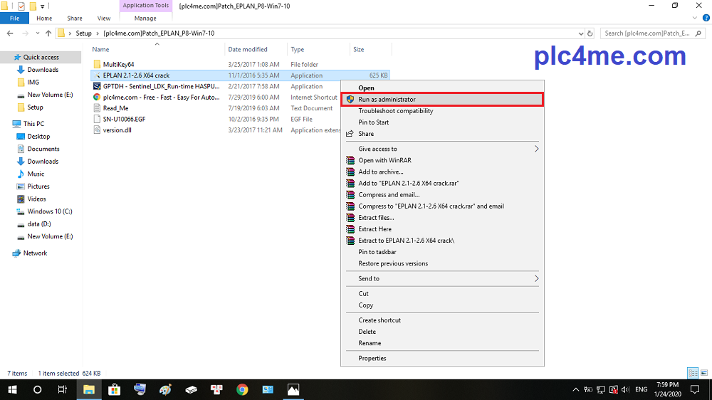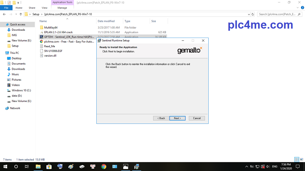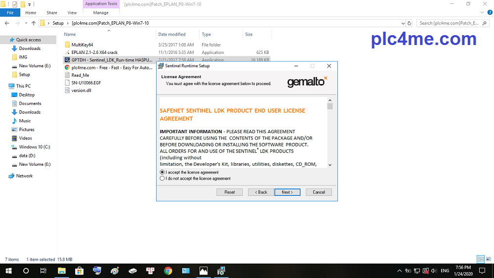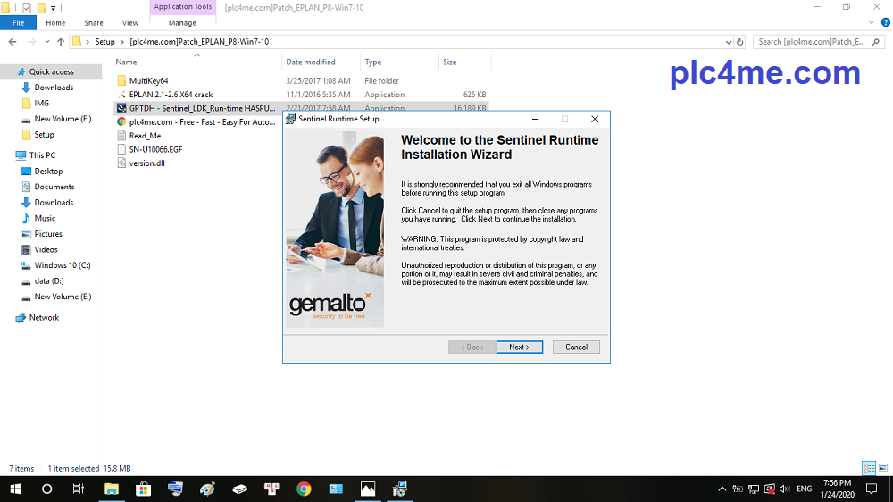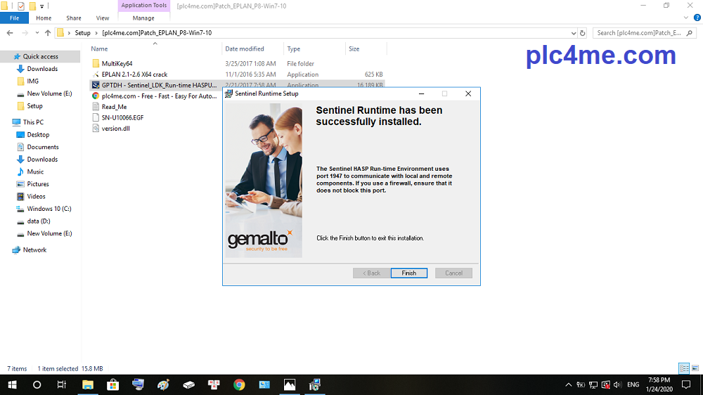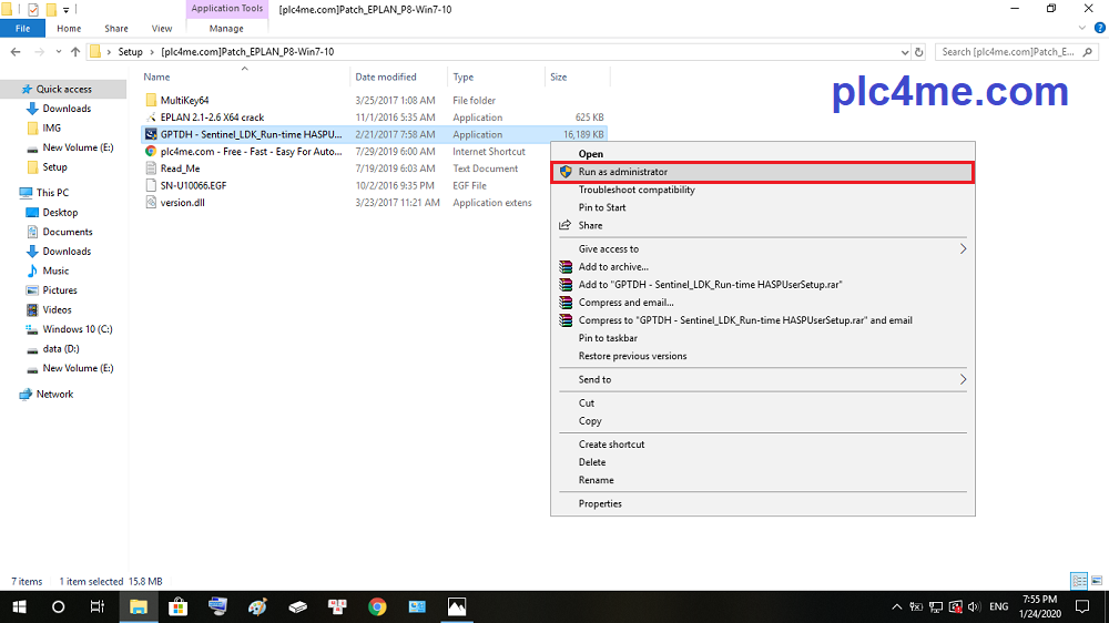 + 11 : Then go back to the Patch_EPLAN_Win7-10 folder and run the file GPTDH-Sentinel_LDK_Runtime… with admin rights.