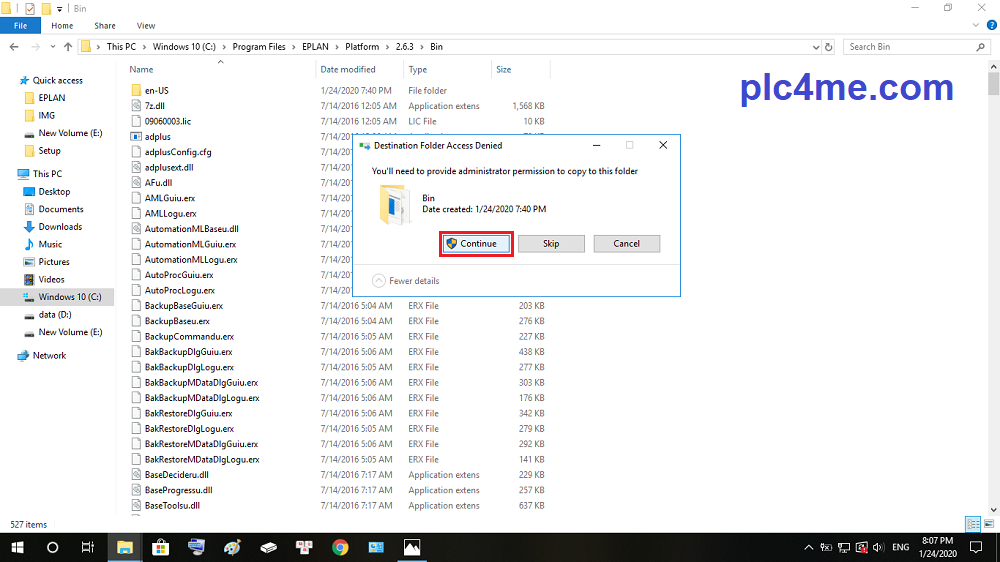 And Paste this path This PC > Windows10 (C) > Program Files > EPLAN > Platform > 2.6.3 > Bin