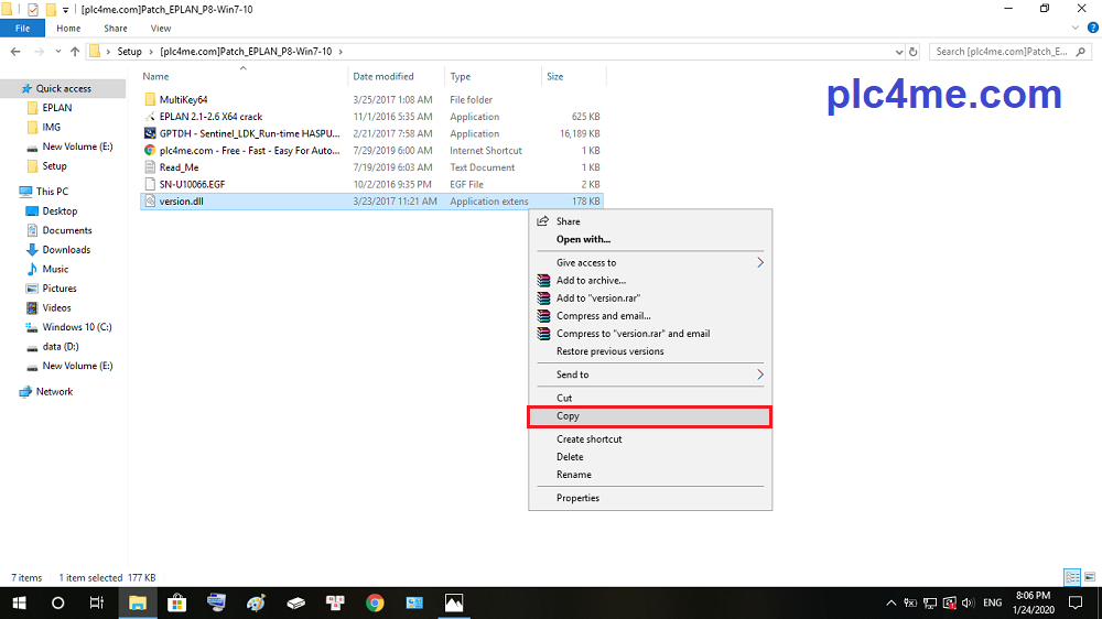 + 23 : Next Copy the version.dll file from the Patch_EPLAN_Win7-10 folder