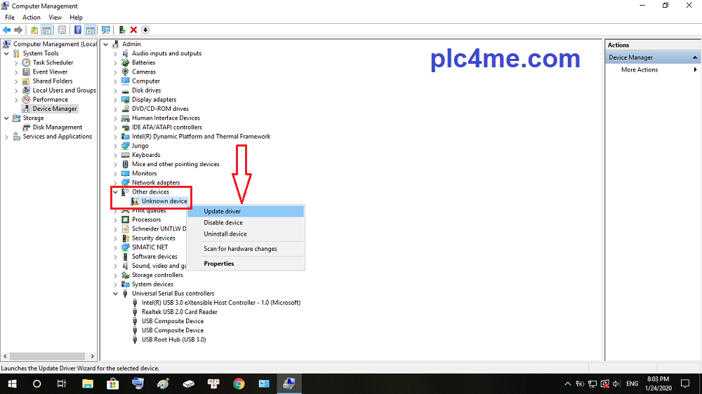 + 18 : Then go to Other devices, right-click Unknown device and select Update Driver
