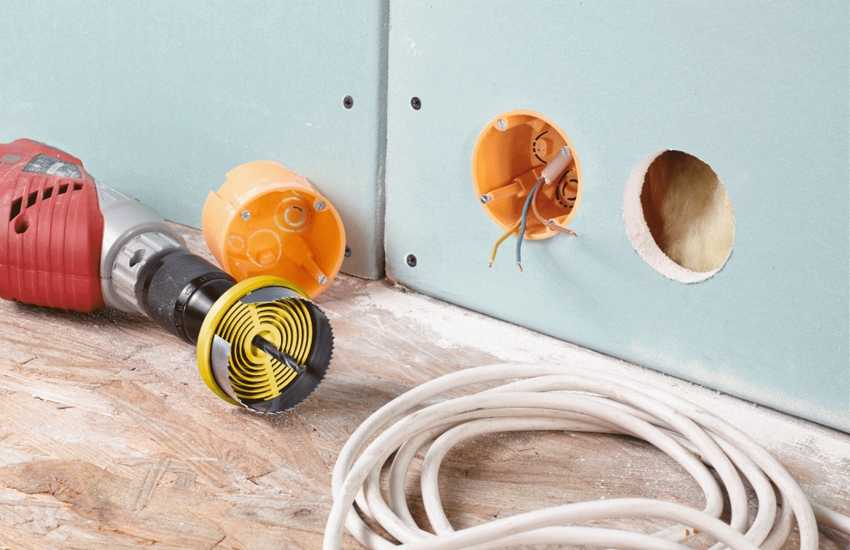 Монтаж розеток в гипсокартон происходит следующим образом: