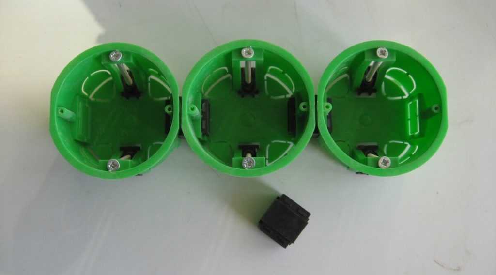 Для монтажа нескольких, расположенных рядом розеток, можно воспользоваться стаканами, сбоку которых находится крепежный механизм. Подрозетники присоединяются друг к другу с помощью специальных пазов и объединяются в блоки.