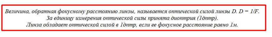 Так как у рассеивающих линз фокус мнимый, условно принято считать фокусное расстояние отрицательным и оптическую силу таких линз тоже отрицательной.