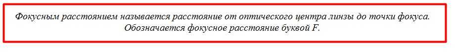 Выпуклые, или собирающие, линзы собирают световые лучи, параллельные главной оптической оси, в одну точку, называемую главным фокусом. Фокусное расстояние — это расстояние между линзой и главным фокусом.